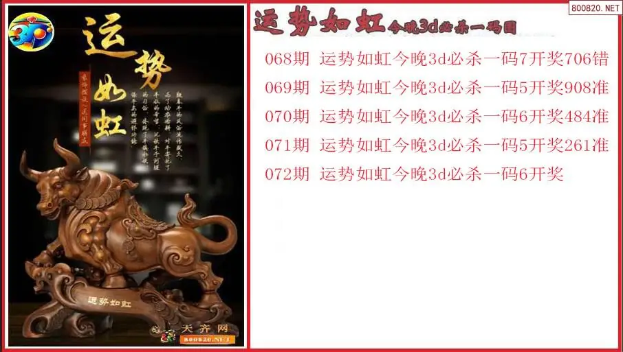 运势如虹2026072期今晚3d必杀一码图(原创)