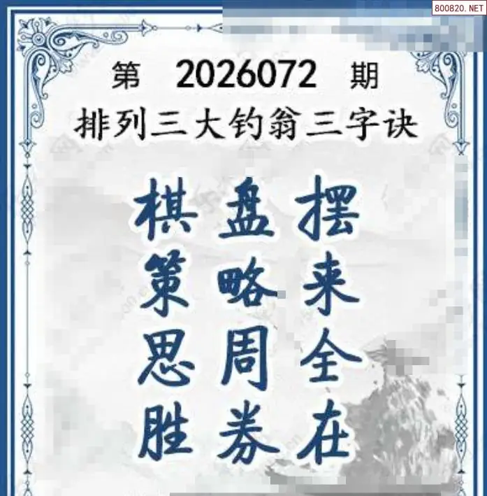 26年072期体彩p3大钓翁三字诀