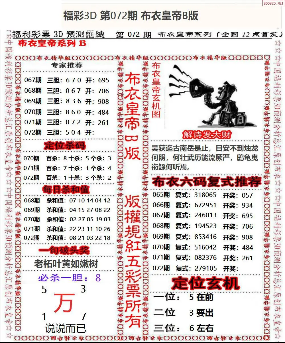 皇帝图26072期布衣皇帝+老夫子布衣3d图谜