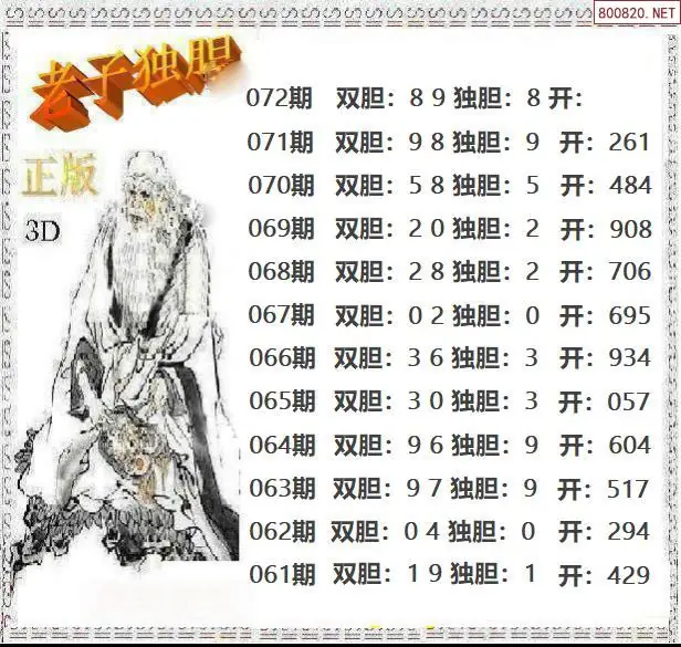 福彩3D072期老子独胆王双胆图迷