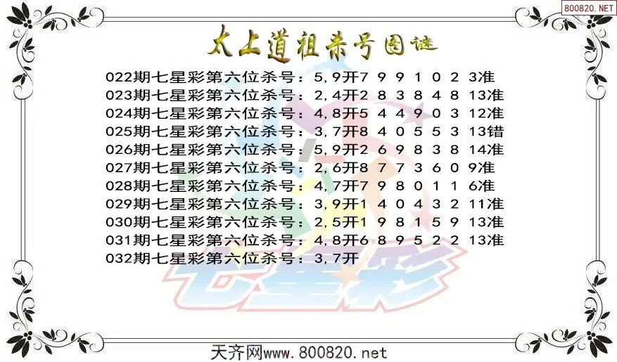4 太上道祖26年032期七星彩杀号图谜