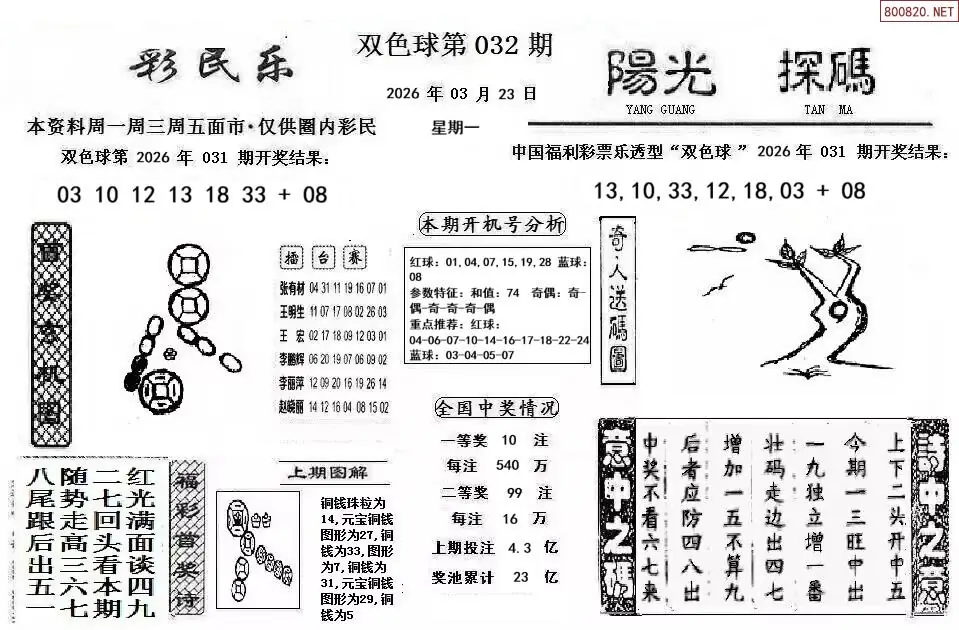 1 双色球26年032期阳光探码+彩民乐图