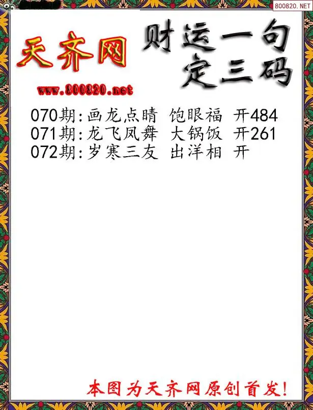 072期财运3D一句定三码字图谜