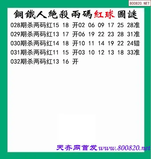 双色球26032期钢铁人杀两红图谜