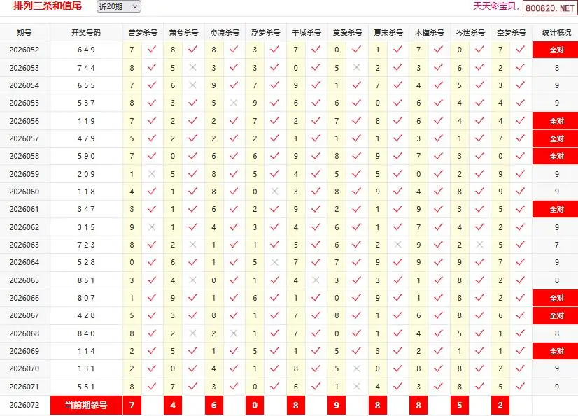 3 26072期[天齐网-小爽]P3杀和值