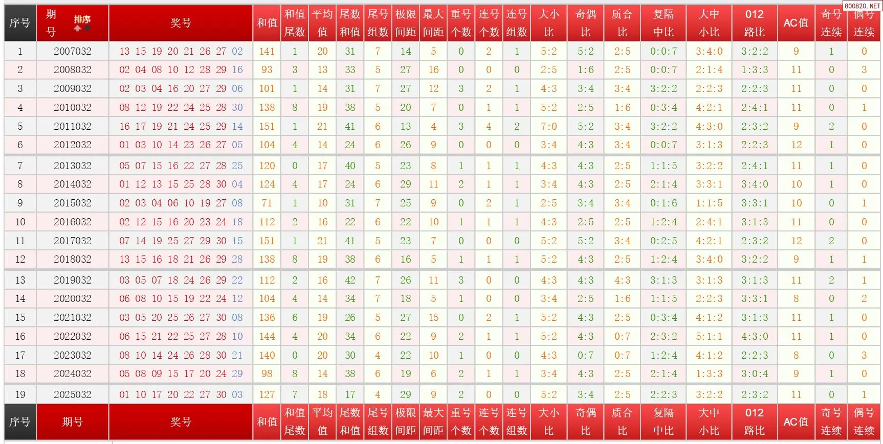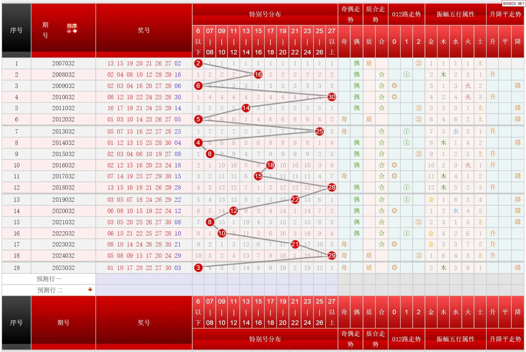 6 032期福彩七乐彩历史同期对比图表