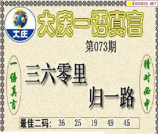 大庆图26073期大庆五码+一语真言黑胆3d图谜