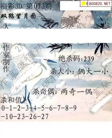 23 三强图26073期三强会员福彩3D系列
