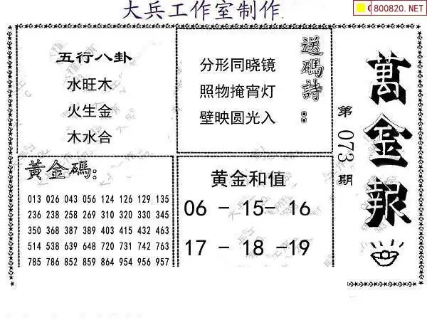 17 钱庄报26073期钱庄快报一句定三码