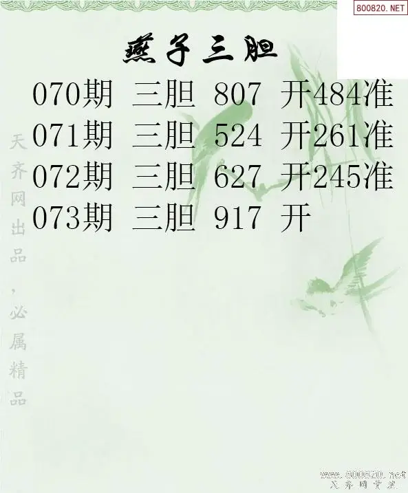 26073期燕子三胆3d胆码图谜-天齐原创