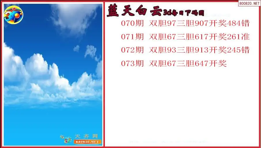 蓝天白云2026073期3d每日下码图(原创)