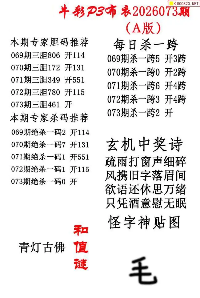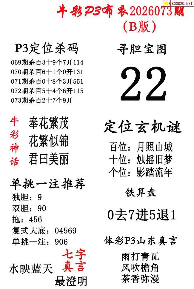 牛彩体彩P3布衣2026年073期AB版图谜(精华版)