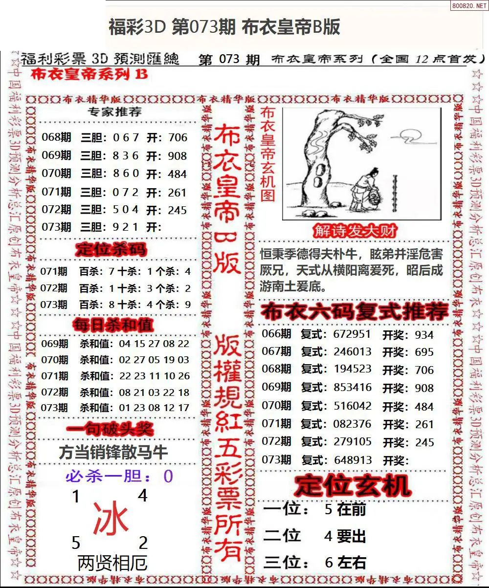 皇帝图26073期布衣皇帝+老夫子布衣3d图谜