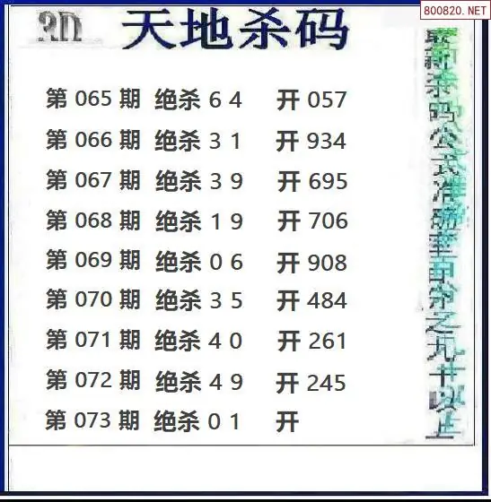 福彩3D073期天地绝杀图谜