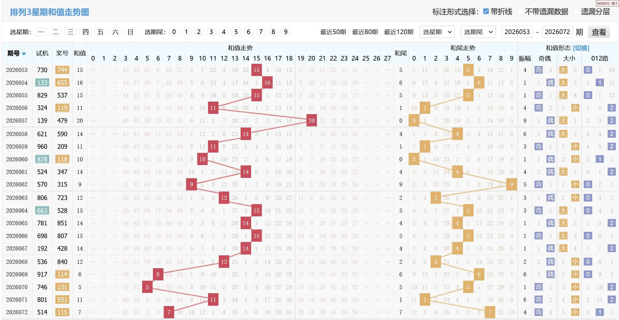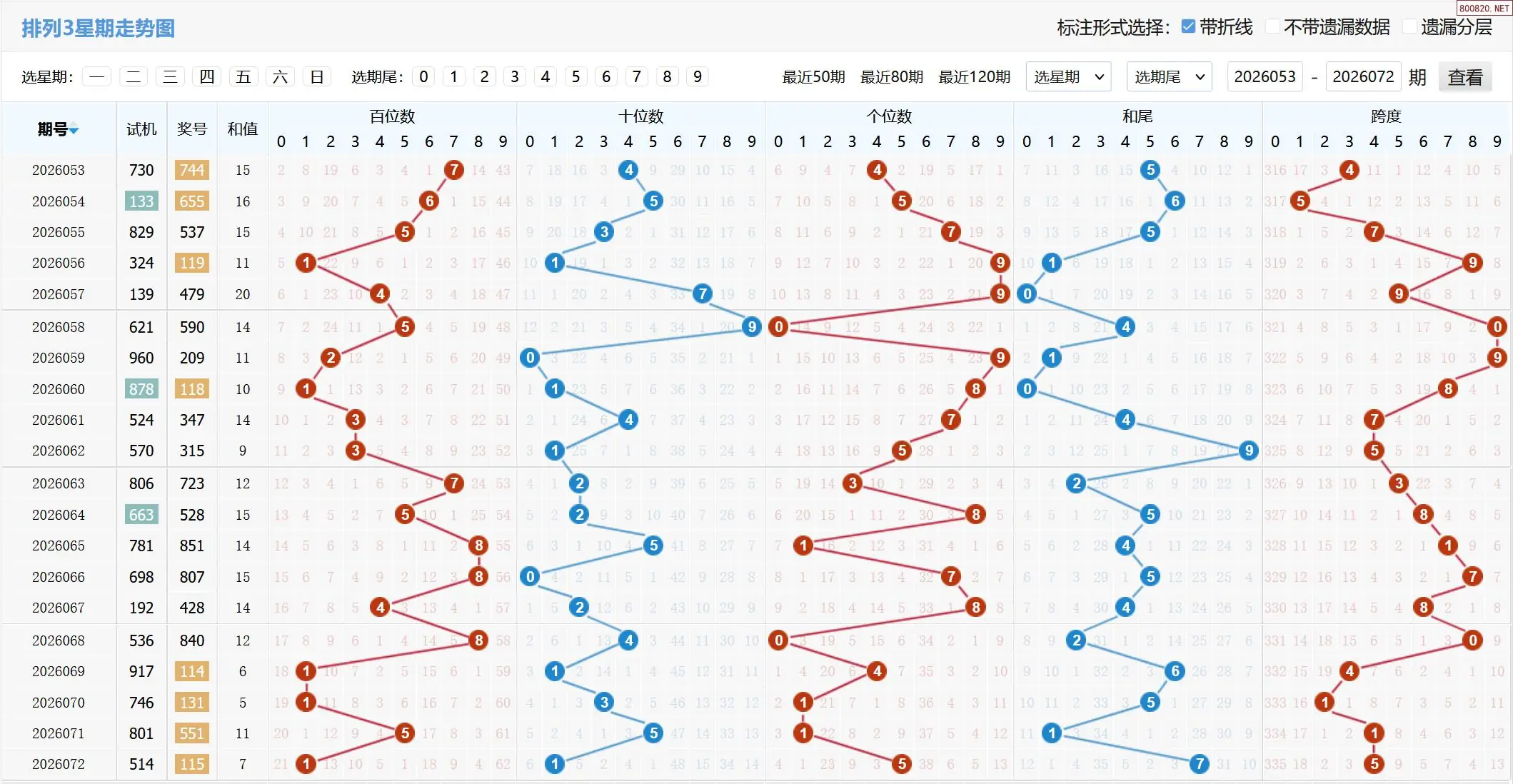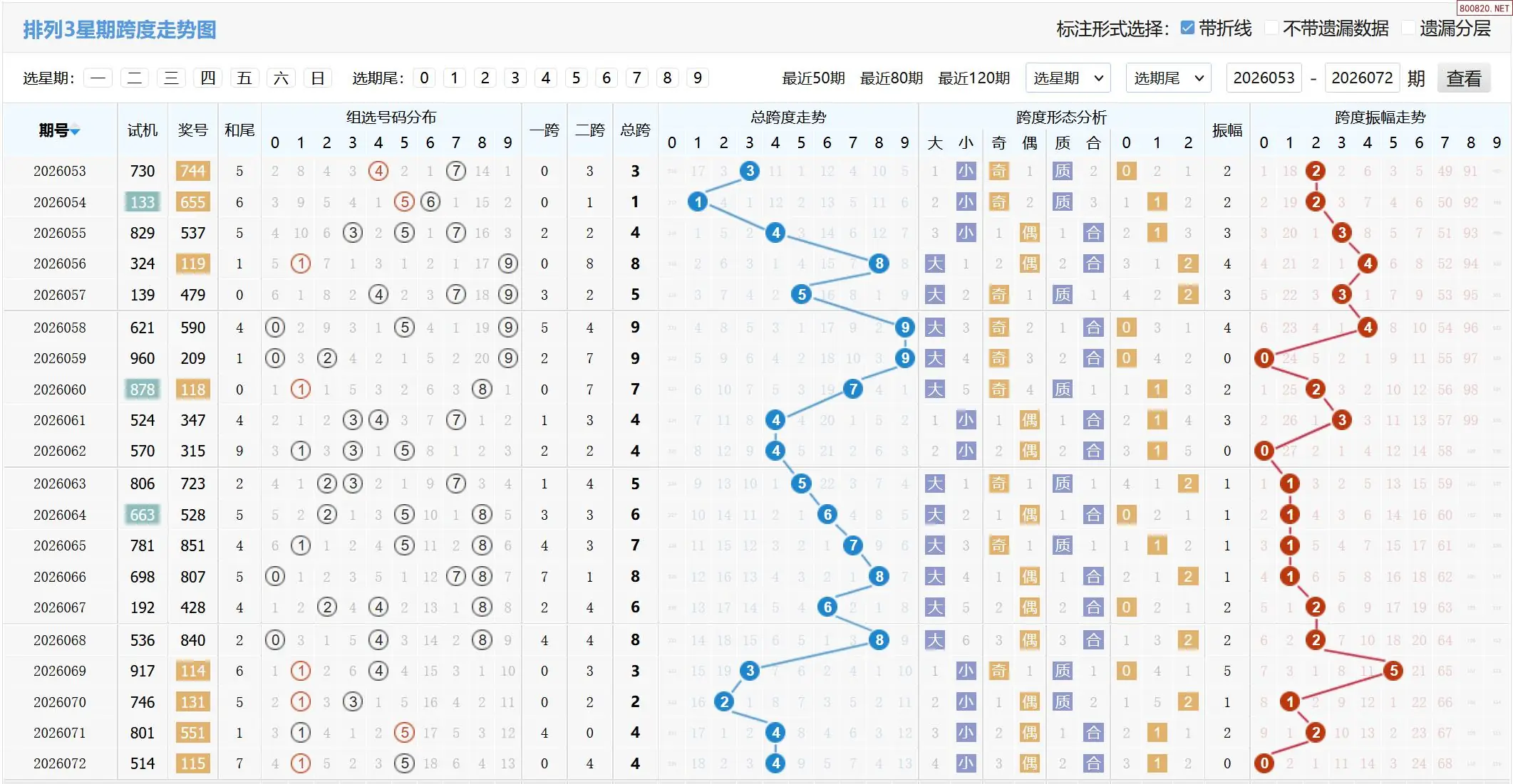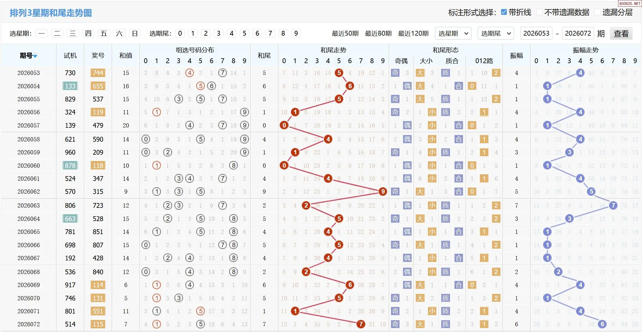 2026073期体彩P3基本走势图如下: