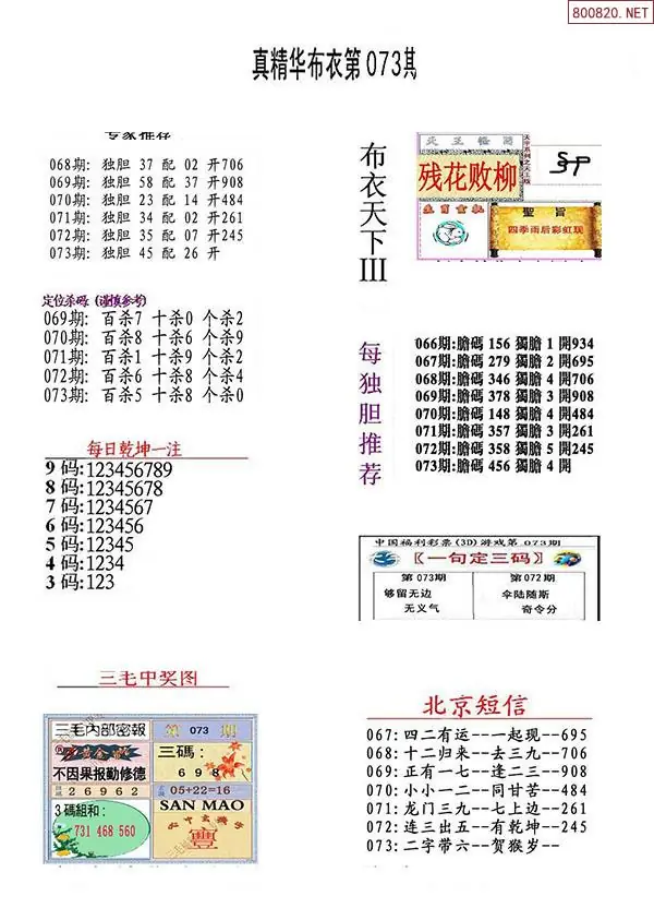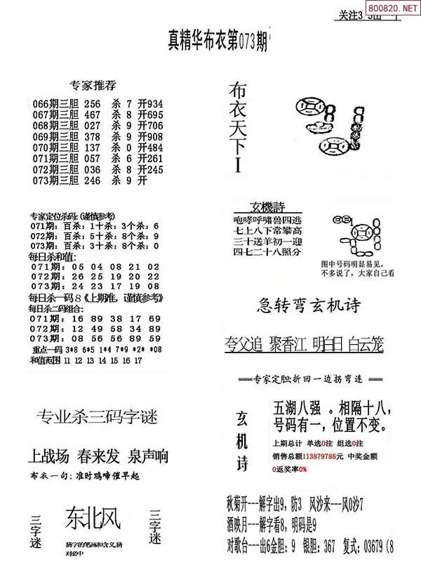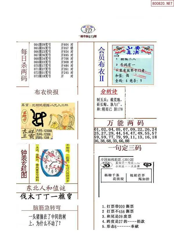 2026年073期精华布衣3D全图