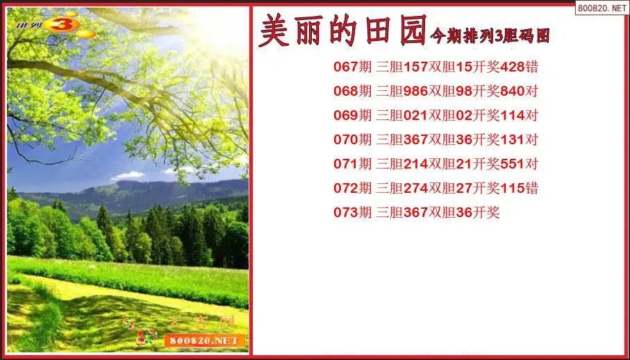 美丽的田园2026073期今期排列3胆码图(原创)