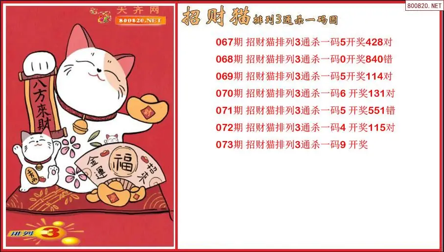 2026073期招财猫排列3通杀一码图(原创)