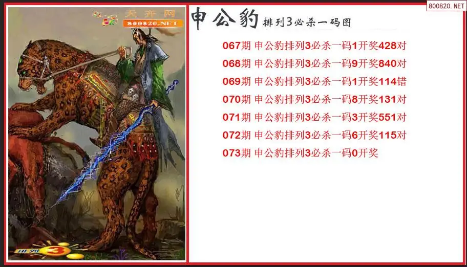 2026073期申公豹排列3必杀一码图(原创)