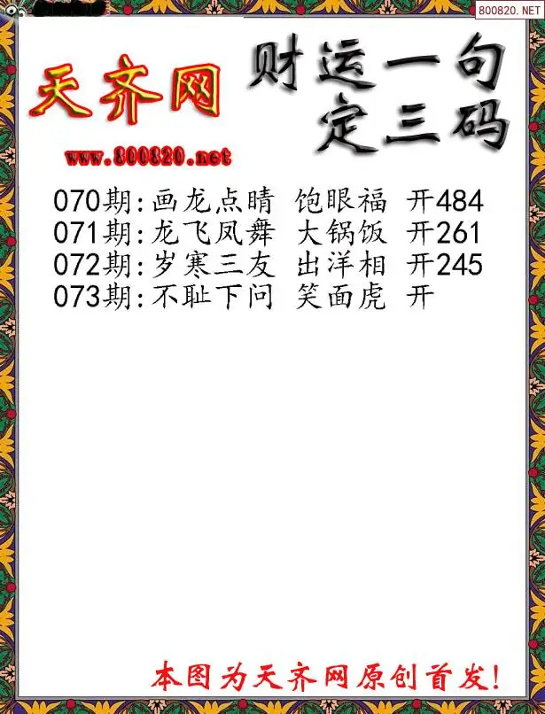 073期财运3D一句定三码字图谜