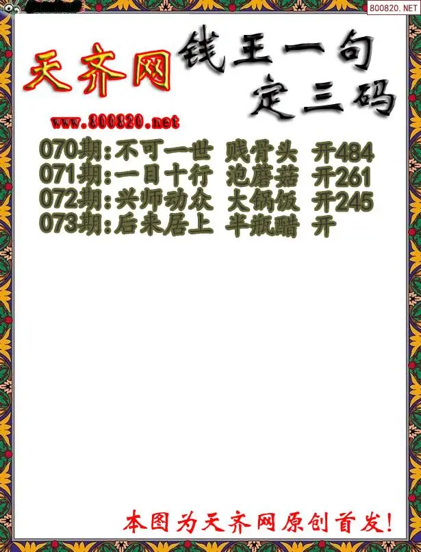073期钱王3D一句定三码字图谜