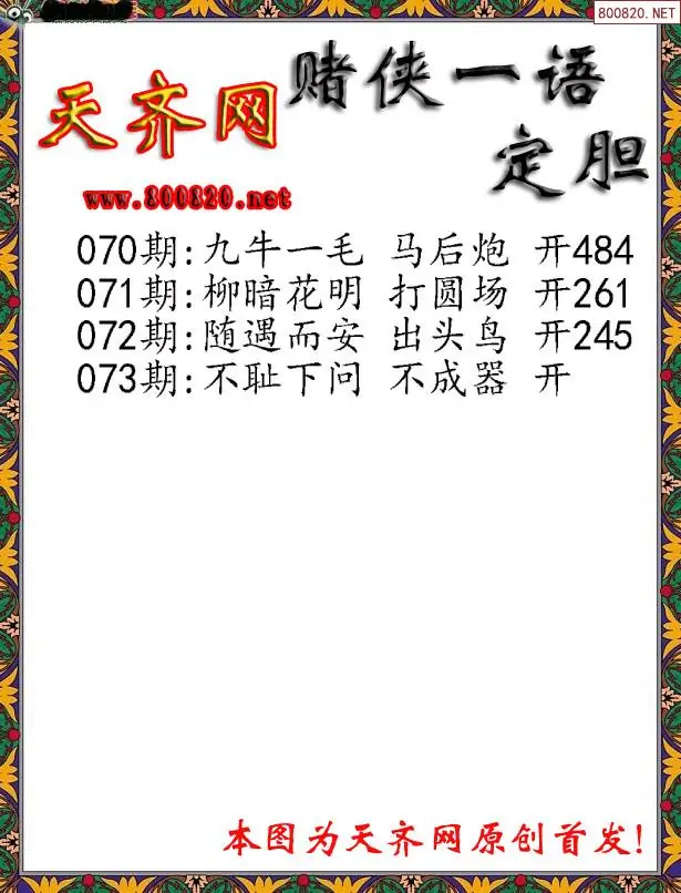 073期[彩3D赌侠一句定三码字图谜