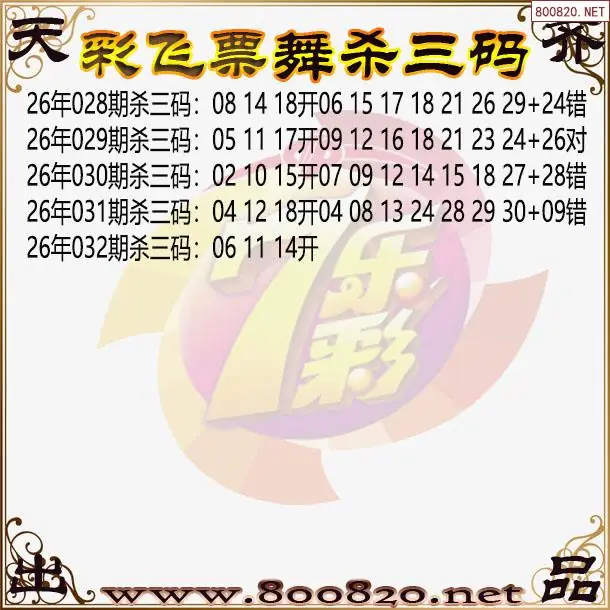 彩飞票舞26年032期七乐彩杀号图谜