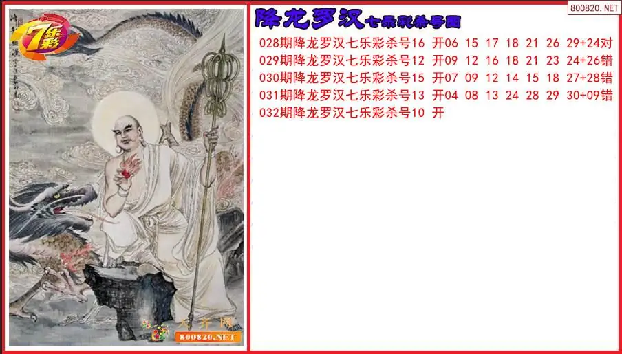 七乐彩2026032期降龙罗汉杀号图