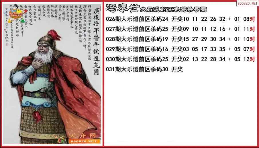 冯奉世2026031期大乐透前区免费杀号图-原创