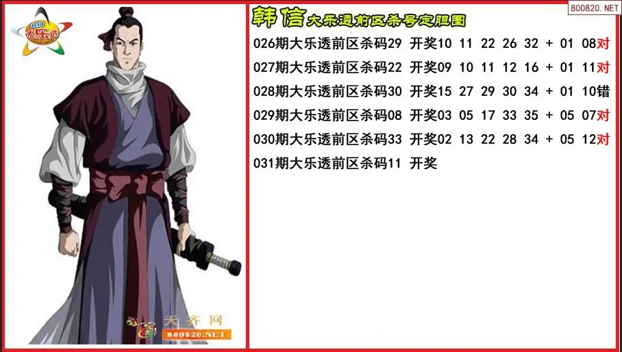 韩信2026031期大乐透前区杀号定胆图-原创