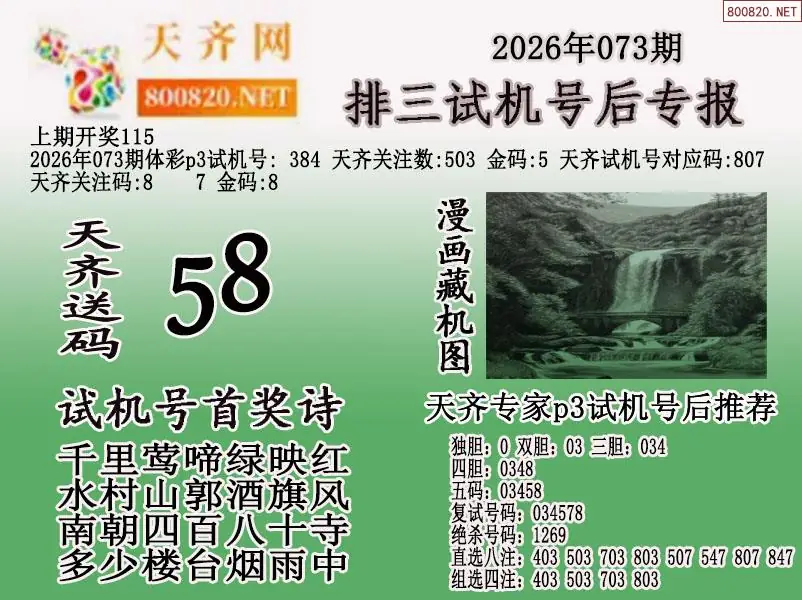 2026年073期体彩p3试机号后天齐网专报