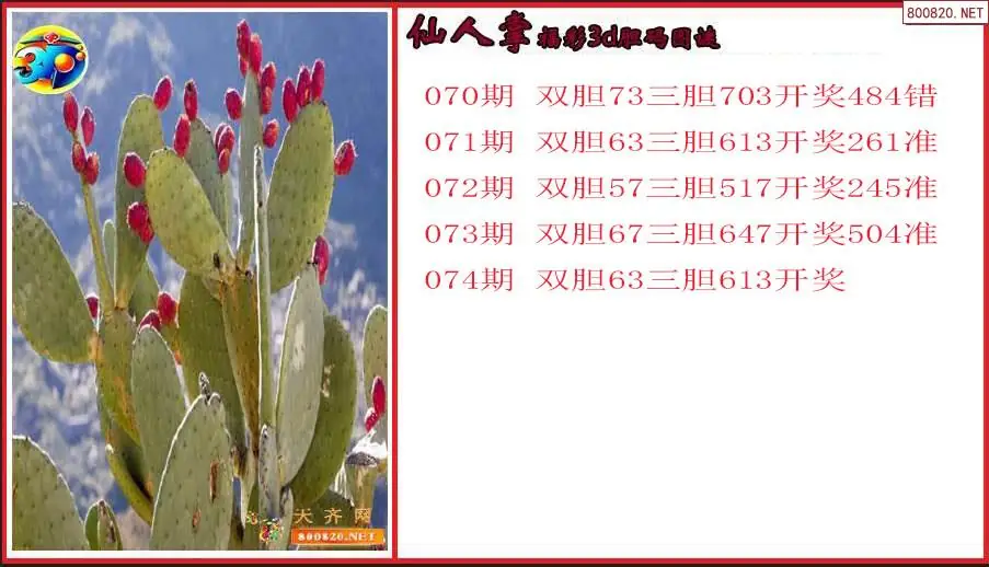 仙人掌2026074期福彩3d胆码图谜(原创)