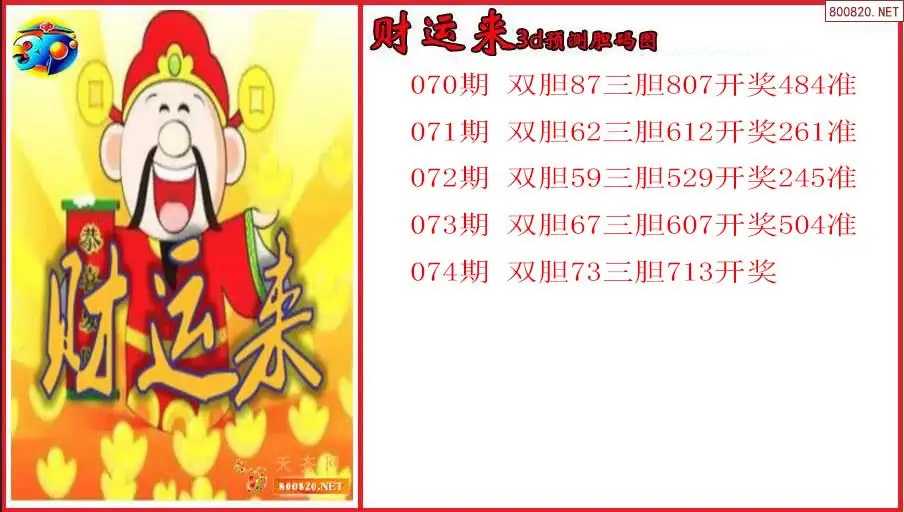 财运来2026074期3d预测胆码图(原创)