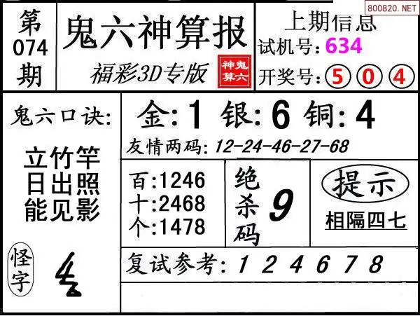 鬼六图26074期鬼六神算报+鬼六胆码图迷