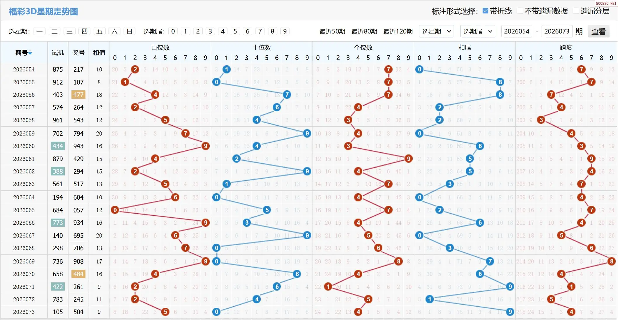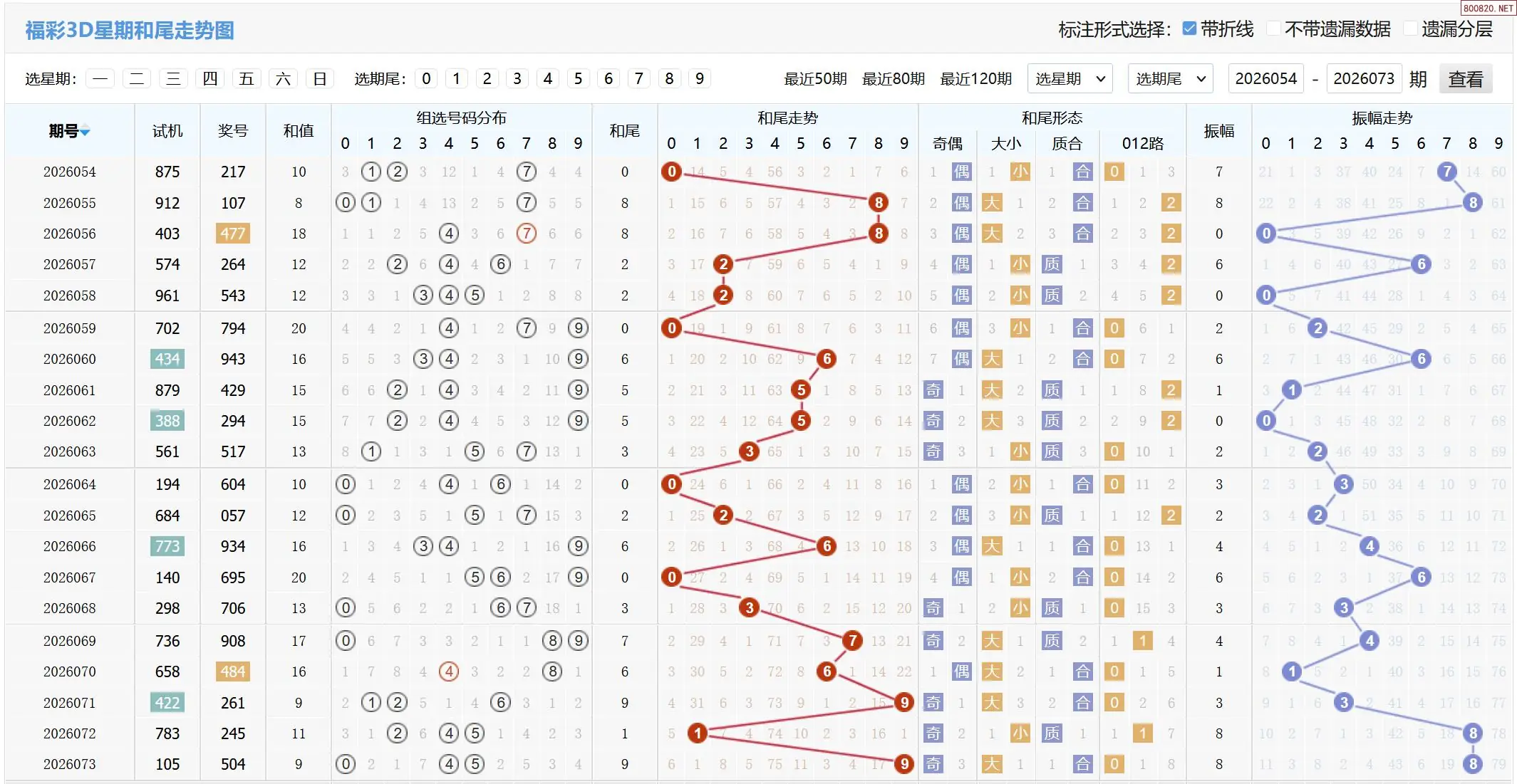 2026074期福彩3D基本走势图如下: