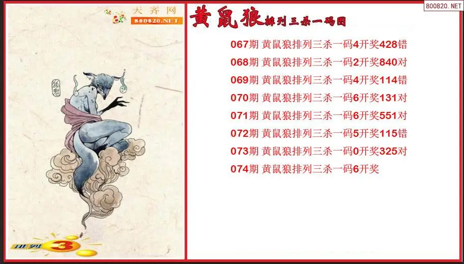 排列3第2026074期黄鼠狼杀一码图(原创)