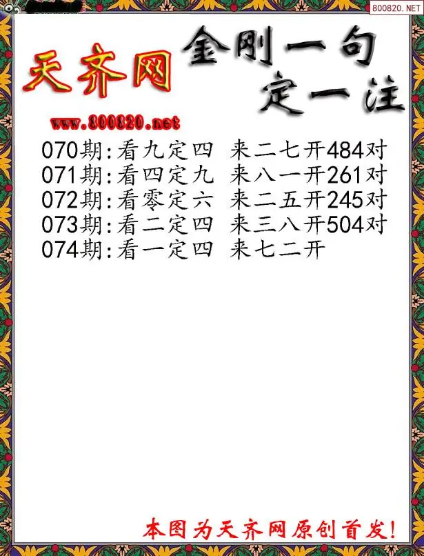 074期3D福彩金刚一句定三码字图谜