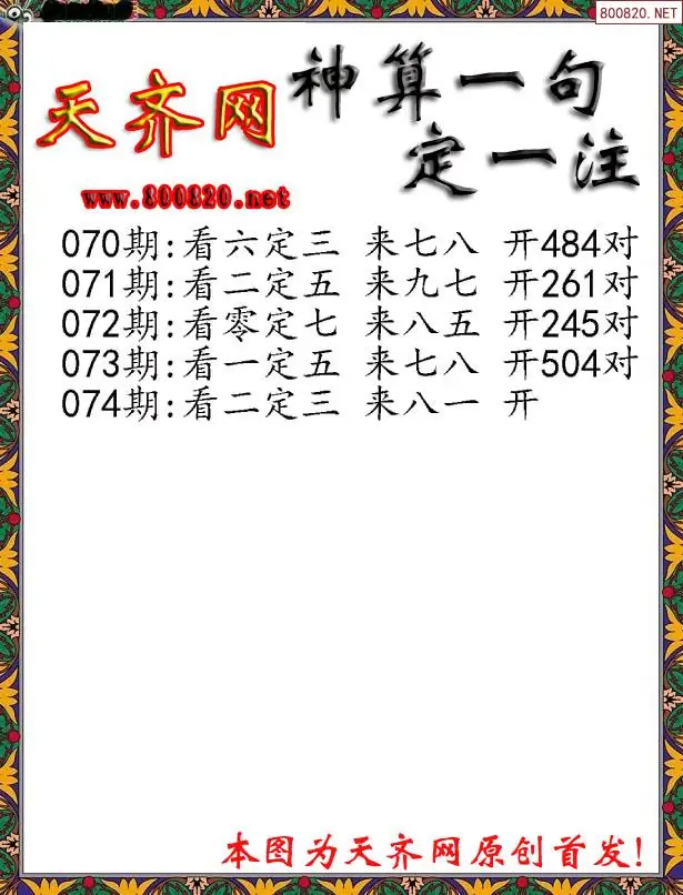 074期3D神算一句定三码字图谜