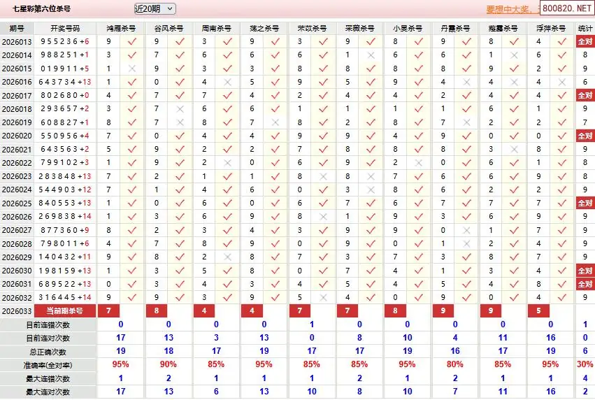 9 澳客七星彩033期十大专家杀六位