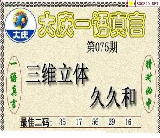大庆图26075期大庆五码+一语真言黑胆3d图谜