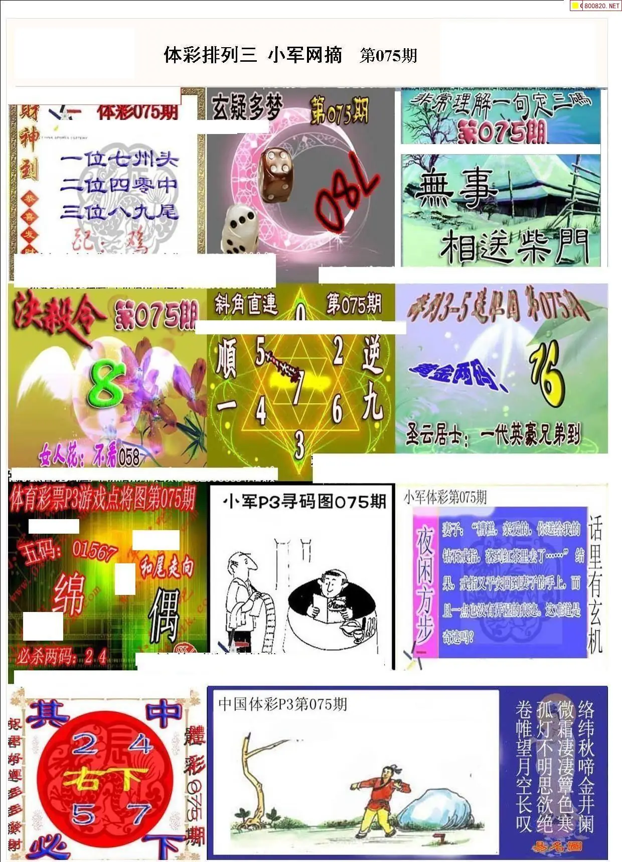 小军网摘26年075期体彩P3彩报