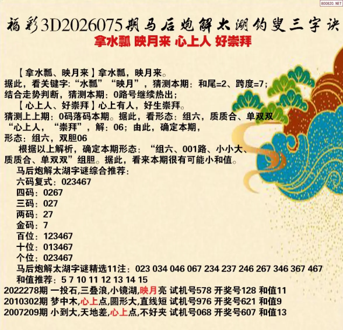 3 26年075期 3D专家解今日太湖字谜