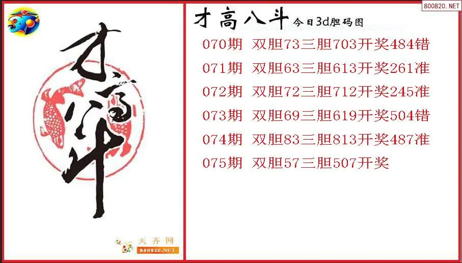 才高八斗2026075期今日3d胆码图(原创)