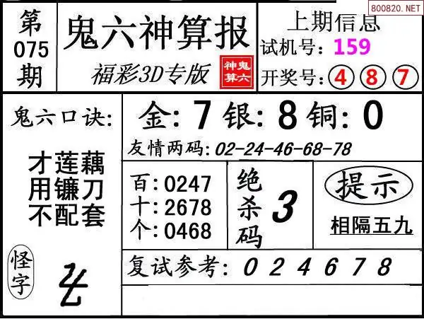 鬼六图26075期鬼六神算报+鬼六胆码图迷