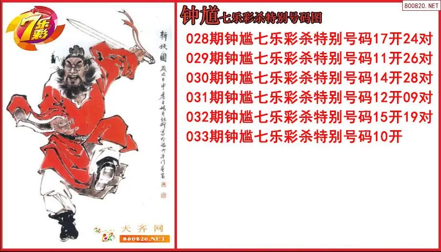 2026年钟馗033期七乐彩杀特别号码图