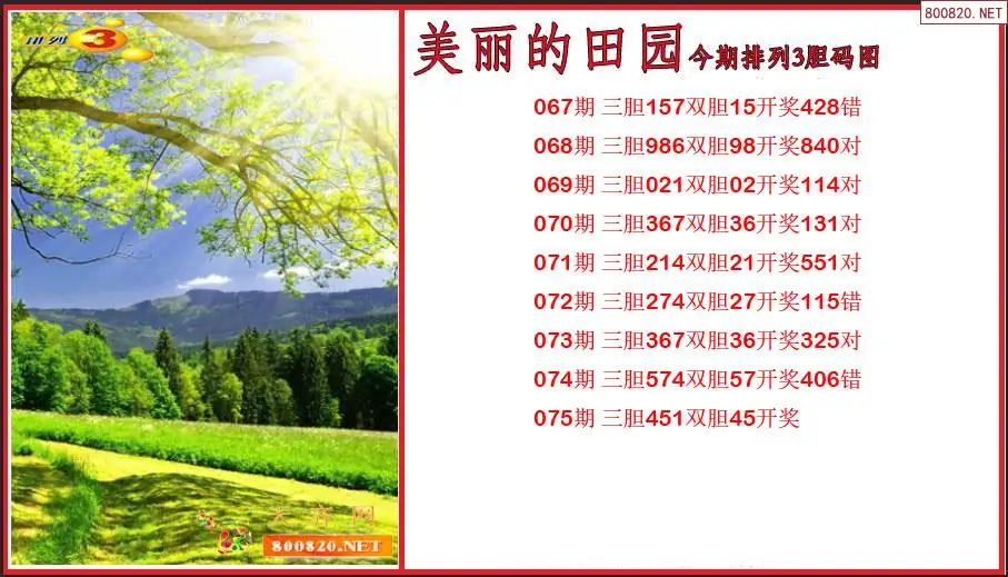 美丽的田园2026075期今期排列3胆码图(原创)