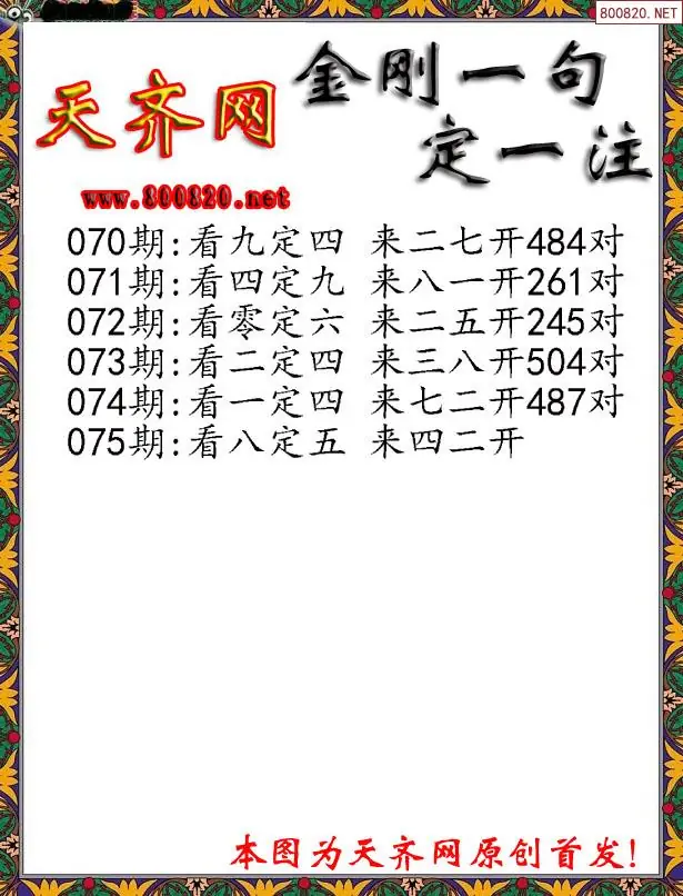 075期3D福彩金刚一句定三码字图谜