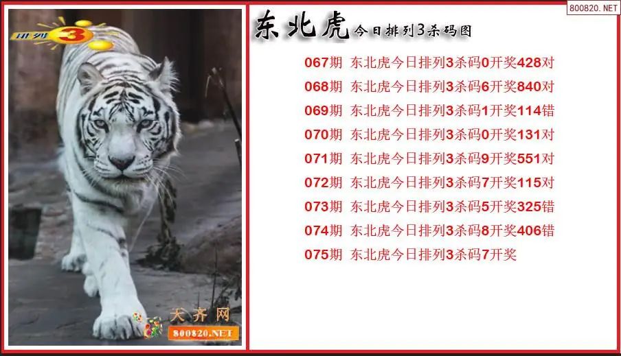 2026075期东北虎排列3通杀一码图(原创)