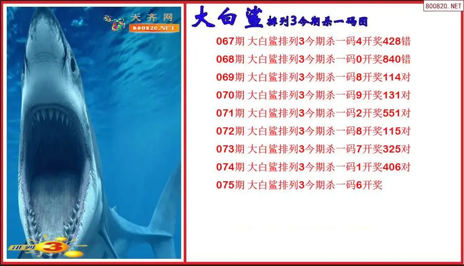 排列3第26075期大白鲨今期杀一码图(原创)