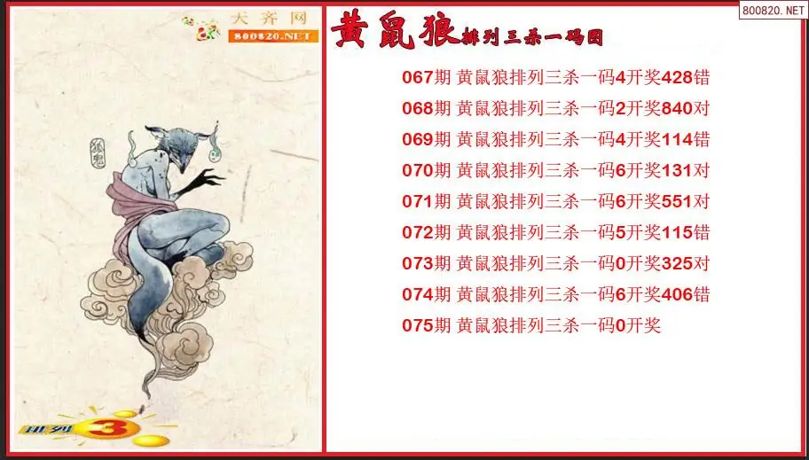 排列3第2026075期黄鼠狼杀一码图(原创)